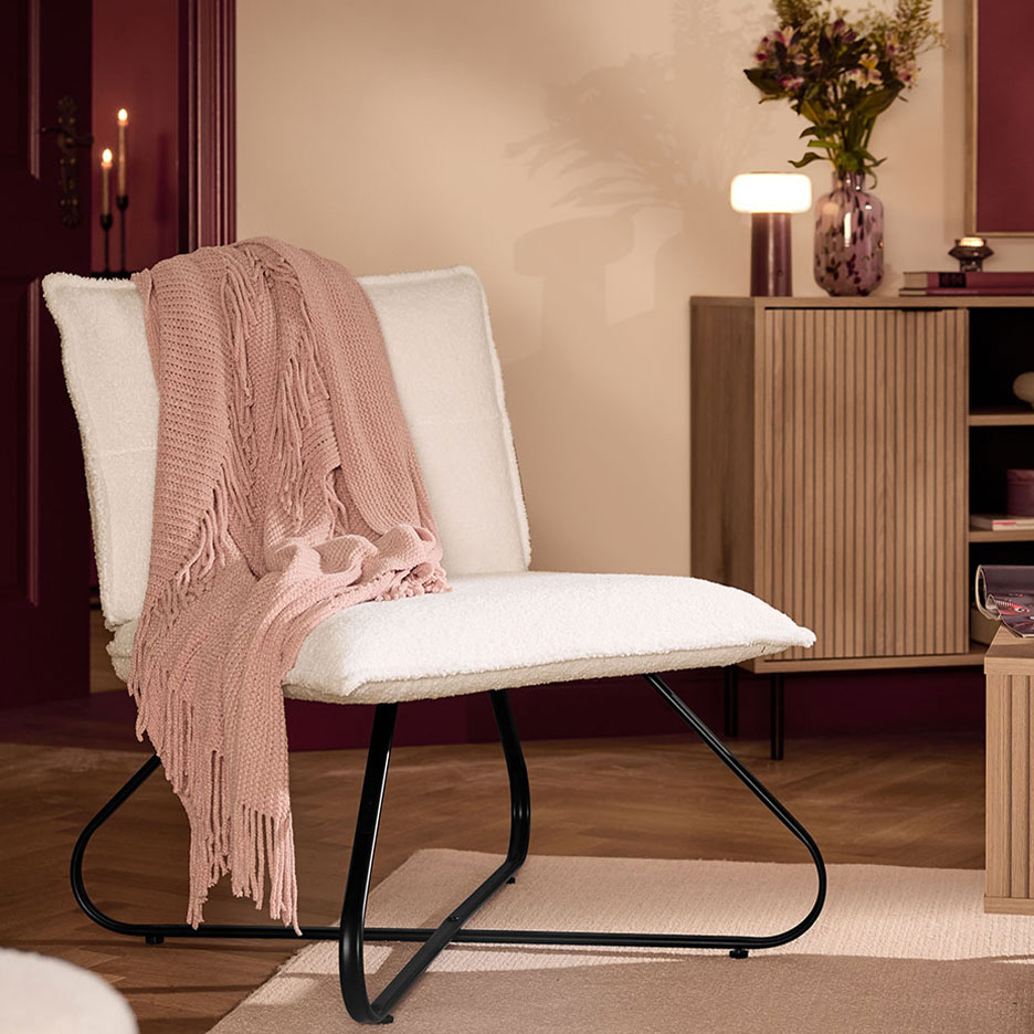 Code Red: How to style decorations in red Red can activate or calm the soul. To ensure that this mood also suits your home, first think about which room you want to blush: In the living room, dining room or bathroom, warm red tones from coral to tomato are an activating choice, while cooler berry tones create a relaxed atmosphere in the bedroom. Bordeaux is either cool or warm, depending on the material and undertone, while dusky pink and reddish pastel are real all-rounders for every mood. To make the style break in red work, you simply need to combine warm with warm and cold with cold - regardless of which colours dominate the furniture and other items. If you want to play it safe, cream, beige or off-white are always the right choice as the main colours, and because red is bursting with self-confidence anyway, you can also go all out when it comes to the materials used for red decorations. Strong textures from bouclé to teddy, carpets with long pile or strikingly shaped objects made of ceramic, metal or glass provide an extra kick.