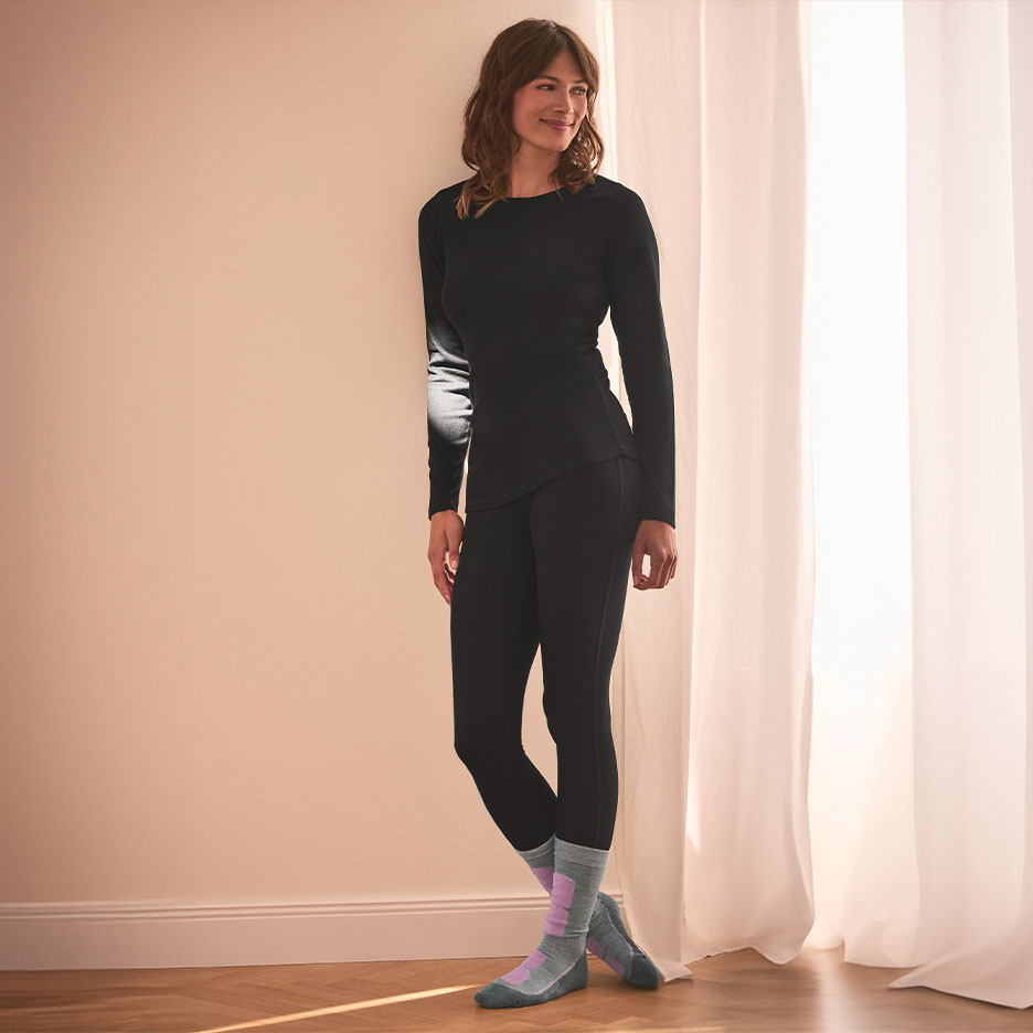 How do I wear thermal clothing? Ideally, you should wear thermal clothing in smart layers. The most important thing is the first layer, which forms a thermal cushion through body contact. Sports underwear or a thermal functional shirt, for example, fit perfectly and cover the skin completely. Look for breathable fibres and choose the right size. A rain or wind-repellent top layer - for example a ladies' jacket - may be slightly wider. Pay particular attention to the fit of the cuffs and the right length for your body and your activities. Don't forget: Most of the heat is lost through the head - so wear a hat!