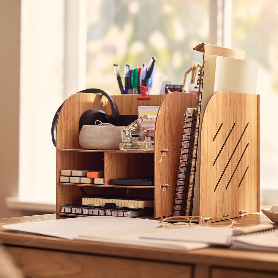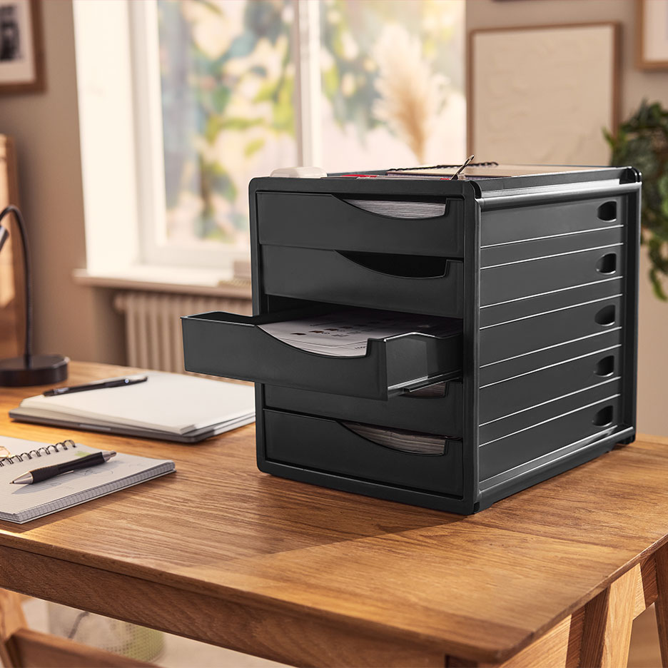Tidying up your home office: get to work! Is your desk disappearing under piles of paper and the search for important documents taking forever? Let's change that. A tidy office makes you more productive and saves you a lot of time. The most important tidying tip? Everything has its place - and is put back there immediately after use: create an organisation system of file folders, roll containers and desk organisers in which everything from pens to important invoices can be stored within easy reach. The following also applies:Start every working day in a tidy office. Tidy up your desk at the end of the day, file documents, put folders back in the filing cabinet, etc. If your home office welcomes you in "factory mode", you are immediately in work mode. Ideas, project outlines, deadlines etc. don't belong on scribbles floating around, but on a whiteboard, a magnetic board or a wall calendar. This way, you always have deadlines in view while your head is free for the next steps. From storage boxes to file folders, every organiser has a label. This means you don't have to remember where you've put things and can find everything at a glance. Thermal label printers are handy, ready to use straight away and don't need any extra ink.Extra tip: As a digital desk, your laptop also needs to be organised. Only applications and documents that you currently need should be on the desktop. Everything else should be well organised and indexed in the memory. You should also regularly clear out your email inbox and cloud.